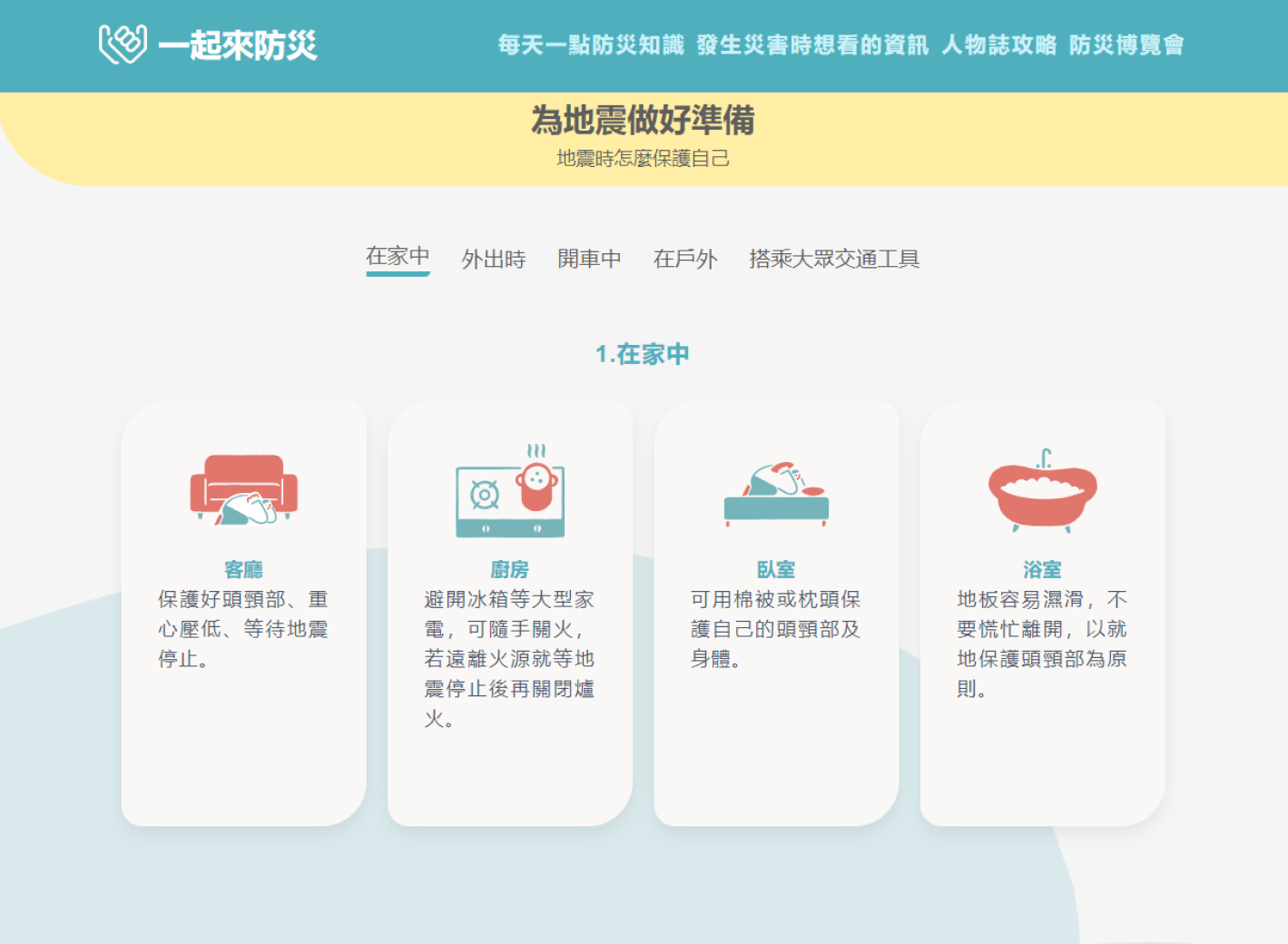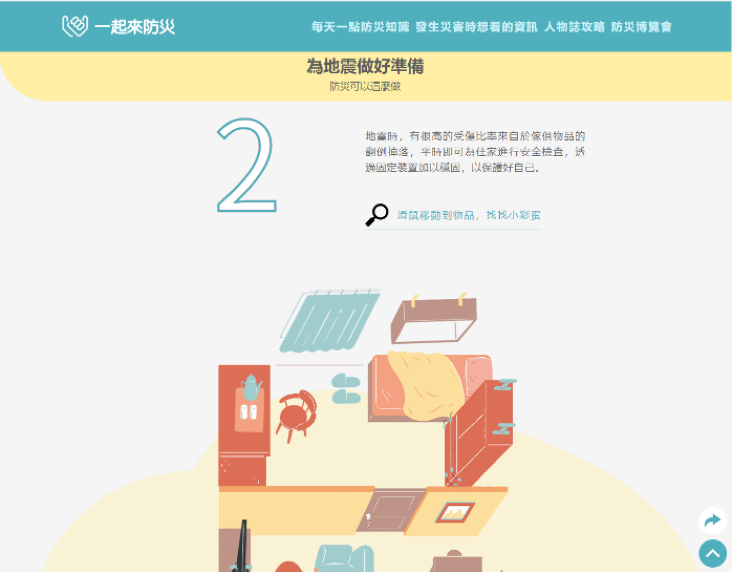 視覺化的圖像設計,讓民眾可以輕鬆的學習防災知識。