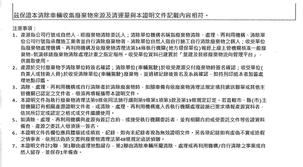 營建及裝潢廢棄物流向管理平台上路 提供業者使用電子化隨車證明文件
