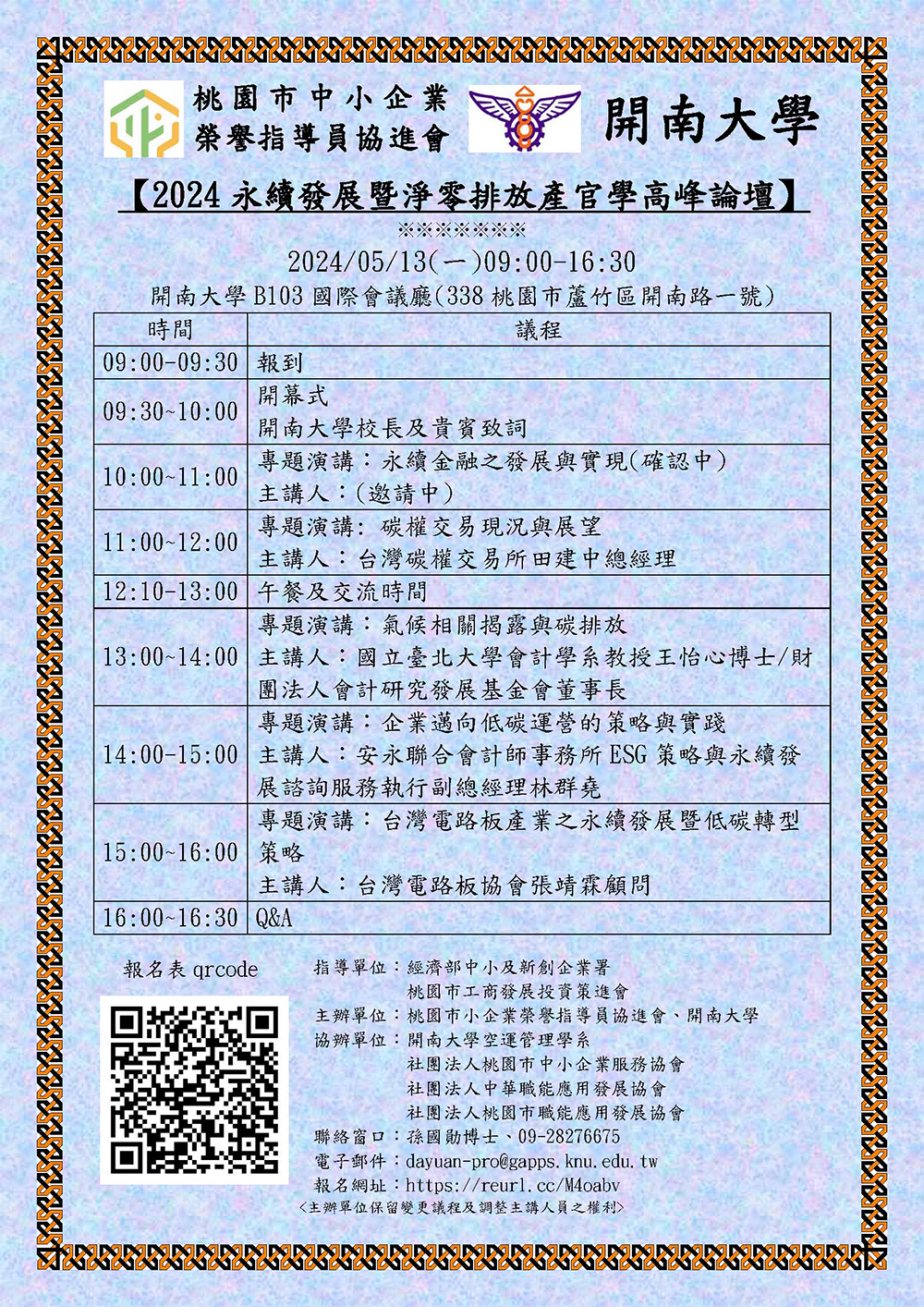 【2024永續發展暨淨零排放產官學高峰論壇】報名表